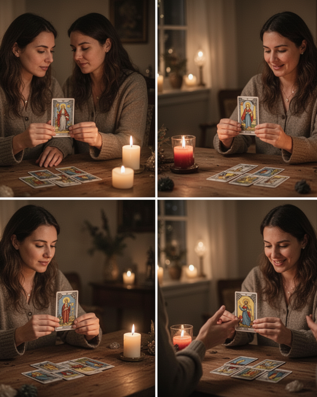 We sit together at the table in a relaxed, welcoming space and allow the cards to guide gentle conversation, insight, and reflection.